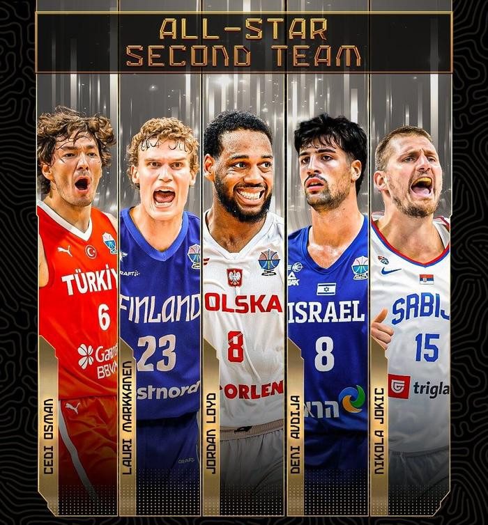 那就是6年前的乔丹-劳埃德,他和欧锦赛最佳阵容的其他9个人一样也曾打过NBA,但只有字母哥和约基奇和他一样赢得过NBA总冠军。