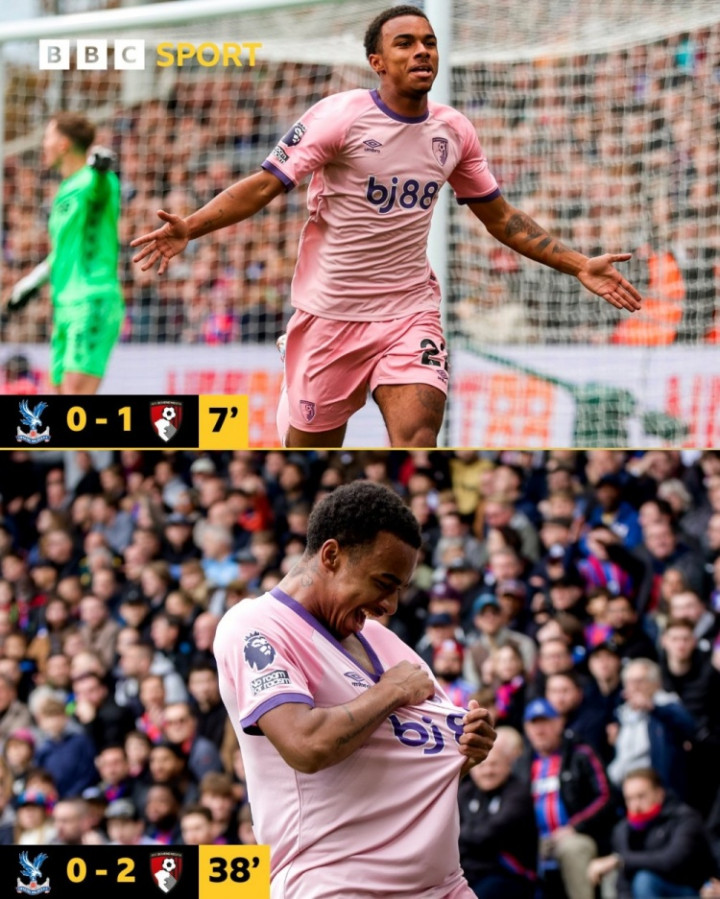 直播吧10月18日讯英超第8轮,伯恩茅斯客场挑战水晶宫。凭借小将克鲁皮的梅开二度,伯恩茅斯2比0领先。