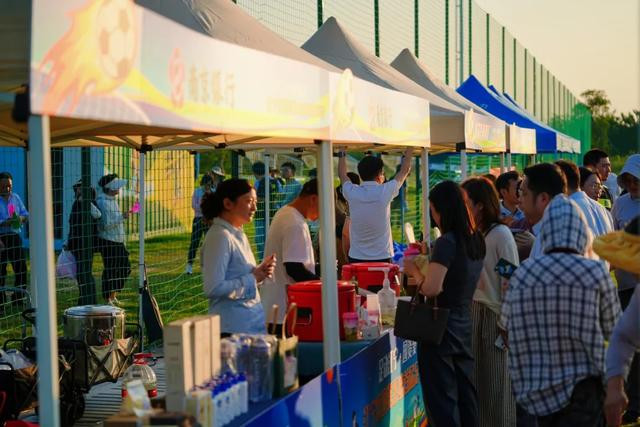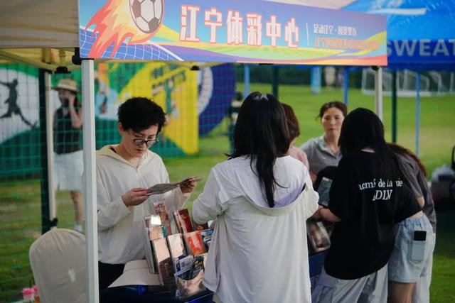 球场上的赛事精彩纷呈,球场边热闹的市集活动同样吸引人。在主题市集区,各国企单位展出了最特色的产品。由中国体育彩票特别支持的足球游戏互动体验区,九宫格射门、带球绕杆等趣味游戏,让球迷和游客在享受足球乐趣的同时,还能赢取丰厚的福利奖品。有着鲜明蜜蜂主题形象的“移动便民车”—“蜜蜂甜巴”也开进了现场,地方特产、文创手作、咖啡简餐,还有来自江宁本土特色美食供大家免费品尝,这种移动服务新场景是江宁公交集团创新打造的,满足球迷们“即看即买”的热情。